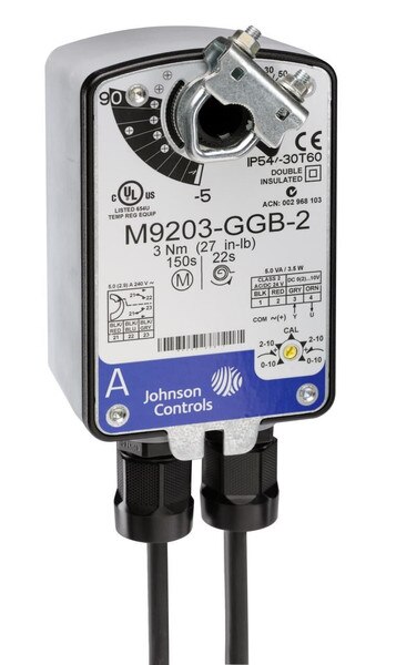 Johnson Controls M9203-BGB-2 SKU: M9203-BGB-2 $243.30 $491.51 Quantity -+ Add to Shopping Cart Call for Lead Time Details Johnson Controls M9203-BGB-2 : Spring Return Electric Actuator, On/Off, 27 in-lb, <75 Second Run Time, <25 Second Spring Return, 24 VAC/DC, 1 SPDT, NE... Data Sheet Installation Instructions DetailsData SheetInstallation Instructions Back Johnson Controls M9203-BGB-2 : Spring Return Electric Actuator, On/Off, 27 in-lb, <75 Second Run Time, <25 Second Spring Return, 24 VAC/DC, 1 SPDT, NEMA 2, 48" (1.2 m) 18 AWG Appliance Cable, 1/2" (13 mm) Conduit Connectors Back Back