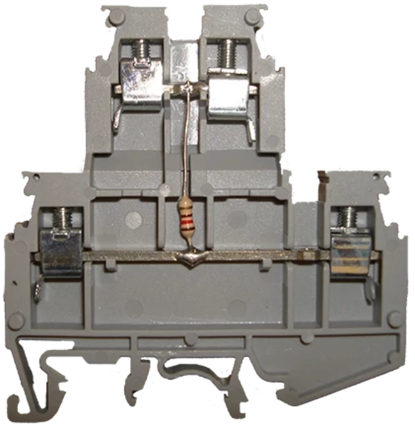 Lynxspring R-120-TB : Din rail mounted terminal block with 120 Ohm internal resistor for termination of 485 communication lines, two lugs in two lugs out. When installed with wire from top lug to bottom lug connection includes the inline resistor. Top to top or bottom to bottom connection bypasses resistor. (10 Pack)