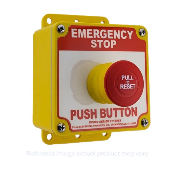 Pilla Electrical ST120ES SKU: ST120ES $185.03 Quantity -+ Add to Shopping Cart In Stock Details Pilla Electrical ST120ES : Push Button Operator Station, Maintained "Pull to Reset" 40mm Mushroom Operator Button, Surface Mount Nema 4x & 12 Nonmetal... Details Back DetailsPilla Electrical ST120ES : Push Button Operator Station, Maintained "Pull to Reset" 40mm Mushroom Operator Button, Surface Mount Nema 4x & 12 Nonmetallic Enclosure, Female PVC Hub on Bottom for 3/4" PVC Conduit, Specific Label "Stop" (Contact Blocks Purchased Separately)